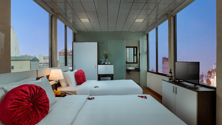 Die klimatisierten Zimmer im Le Beryl Hanoi Hotel bieten Ihnen einen angenehmen Aufenthalt. Jedes Zimmer verfügt über einen Sitzbereich, einen Flachbild-Sat-TV, einen Safe und ein eigenes Badezimmer mit kostenlosen Pflegeprodukten und einem Haartrockner. Ein Wasserkocher und ein Kühlschrank sind ebenfalls vorhanden. Einige Zimmer verfügen über einen Balkon oder bieten einen herrlichen Blick auf die Stadt. Die Zimmer sind komfortabel und bieten Ihnen alles, was Sie für einen entspannten Aufenthalt benötigen.