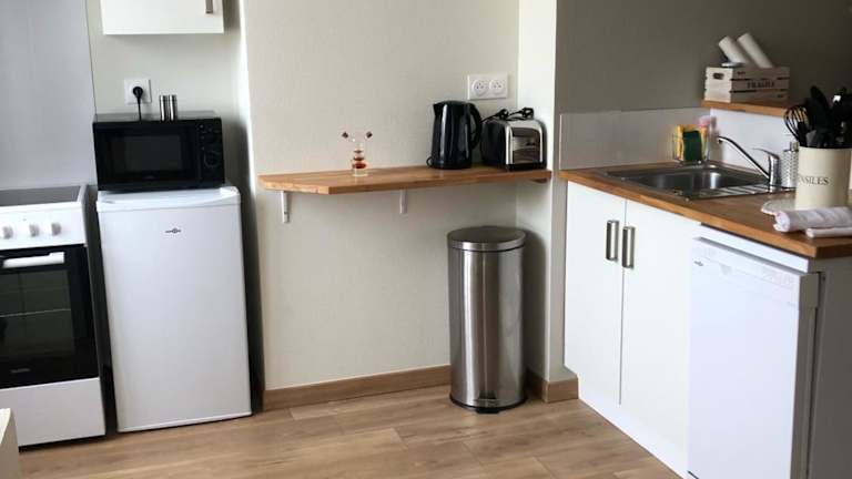 Das Apartment im Le Burin des Rosiers bietet ein gemütliches Schlafzimmer mit komfortablen Betten für eine erholsame Nachtruhe. Der Wohnbereich verfügt über einen Flachbild-TV, der für Unterhaltung sorgt. Die voll ausgestattete Küche bietet alles, was Sie für die Zubereitung von Mahlzeiten benötigen, einschließlich eines Kühlschranks und eines Geschirrspülers. Eine Waschmaschine ist ebenfalls vorhanden, um Ihren Aufenthalt angenehmer zu gestalten. Das Badezimmer verfügt über eine Dusche und Handtücher und Bettwäsche werden gestellt, um Ihren Komfort zu gewährleisten.