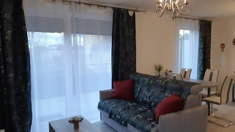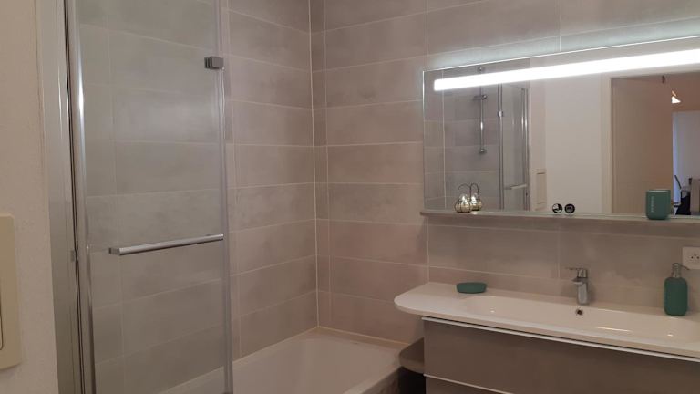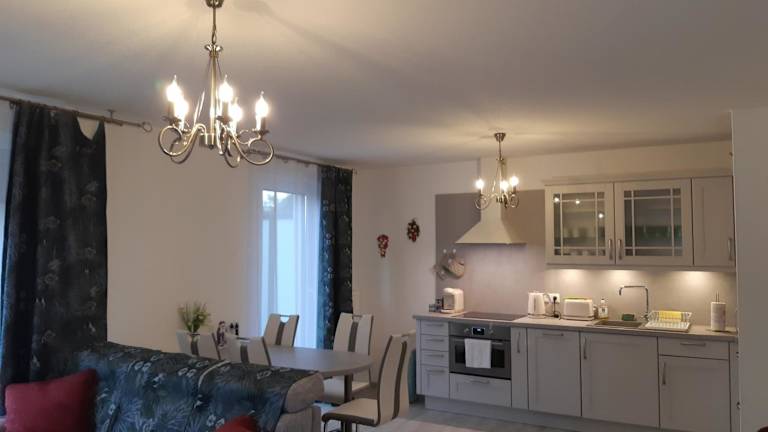 Die Ferienwohnung umfasst zwei Schlafzimmer, ein Wohnzimmer und ein Badezimmer mit einer Badewanne. Eine gut ausgestattete Küche mit Kühlschrank und Ofen ist vorhanden. Zur Ausstattung gehören zudem ein Flachbild-TV sowie Handtücher und Bettwäsche.