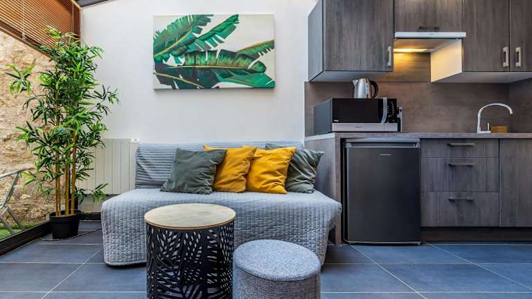 Le Central Bleau 2 - Hypercentre bietet kostenloses WLAN und eine Terrasse. Die Ferienwohnung umfasst ein Schlafzimmer, ein Wohnzimmer und eine voll ausgestattete Küche.