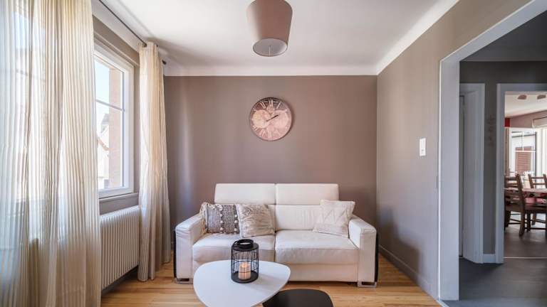 Die Ferienwohnung besteht aus zwei Schlafzimmern, einem Wohnzimmer und einer voll ausgestatteten Küche, die mit einem Kühlschrank sowie einer Kaffeemaschine ausgestattet ist. Zudem steht ein Badezimmer mit Badewanne oder Dusche und Haartrockner zur Verfügung. Handtücher und Bettwäsche können auf Anfrage gegen Aufpreis bereitgestellt werden.