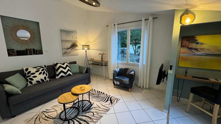 Die Unterkunft liegt in der Nähe des Strandes Plage de l'Amelie, nur 300 Meter von dort entfernt und 100 Meter vom Strand Plage Sud. Strand Plage Centrale befindet sich 2,4 Kilometer entfernt. Der nächste Flughafen ist der Flughafen Bordeaux, der 91 Kilometer entfernt ist.