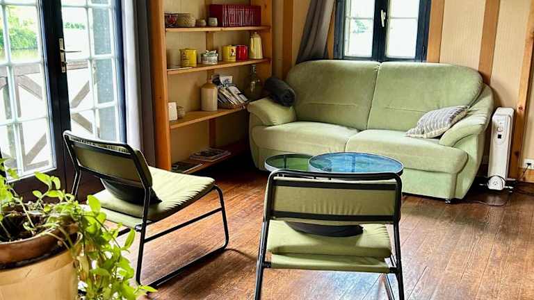 Das Chez Anne & Fred bietet komfortable Unterkünfte in einem gemütlichen Chalet. Das Chalet verfügt über ein Hauptzimmer, ein Schlafzimmer im Zwischengeschoss und ein Badezimmer mit Dusche und WC. Es gibt auch einen separaten Sitzbereich mit einem Flachbild-TV und eine gut ausgestattete Küche mit Backofen, Mikrowelle und Kühlschrank. Kostenloses WLAN steht Ihnen in der gesamten Unterkunft zur Verfügung.