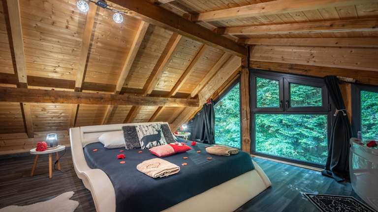 Das Chalet verfügt über ein Schlafzimmer, ein Wohnzimmer sowie eine voll ausgestattete Küche mit Kühlschrank und Kaffeemaschine. Ein Badezimmer mit Dusche und Haartrockner ist vorhanden. Handtücher und Bettwäsche werden bereitgestellt. Die Zimmer sind klimatisiert und die gesamte Unterkunft ist eine Nichtraucherzone.