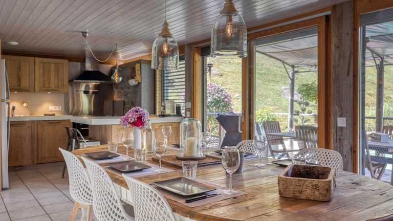 Das Chalet bietet eine voll ausgestattete Küche, einen Essbereich, einen Flachbild-TV mit Satellitenkanälen, sowie eine Terrasse mit Blick auf die Berge. Bettwäsche und Handtücher sind ebenfalls vorhanden.