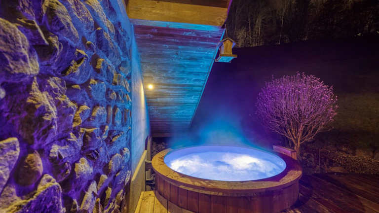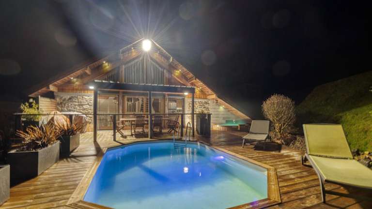 Le Chalet des Eaux - Thermes - Ski bietet Übernachtungsmöglichkeiten in einem Chalet mit einem Außenpool, Garten und einer Bar. Die Gäste profitieren von kostenlosem WLAN und einem Poolblick. Das Chalet ist mit 3 Schlafzimmern und 2 Badezimmern ausgestattet.
