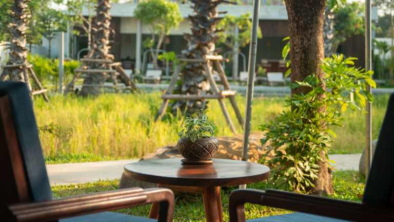 Das Hotel Le Chanthou Boutique Resort liegt nur 5 Minuten Tuk Tuk-Fahrt vom Stadtzentrum von Siem Reap entfernt und bietet somit eine willkommene Ruheoase nach einem erlebnisreichen Tag in den Tempeln. Das Resort befindet sich inmitten von Reisterrassen und vermittelt eine authentische kambodschanische Dorfatmosphäre. Die belebte Stadt Siem Reap wird schnell hinter sich gelassen, sobald man das abgeschiedene Resort erreicht. Von hier aus können Sie den Blick auf die Reisterrassen genießen und sich entspannt am Pool mit einem kalten Getränk zurücklehnen.