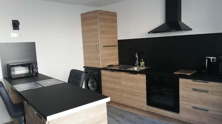 Die Unterkunft verfügt über eine voll ausgestattete Küche, die mit einem Kühlschrank und einem Ofen ausgestattet ist.