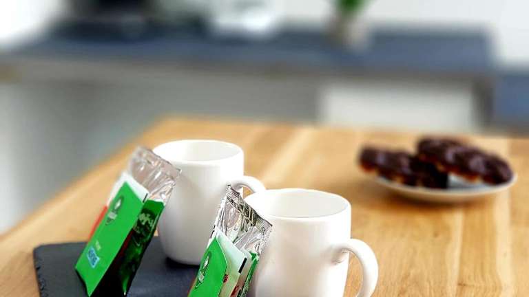 Eine Café-Einrichtung ist vor Ort vorhanden, jedoch sind keine weiteren Details zu den Verpflegungsmöglichkeiten angegeben.