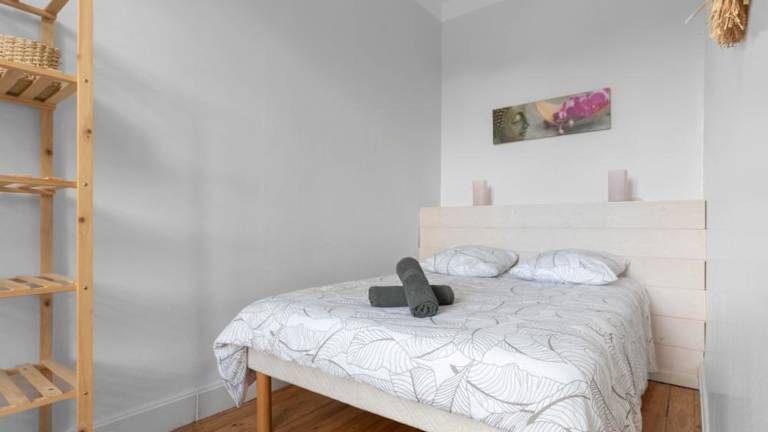 Die Ferienwohnung bietet ein Schlafzimmer sowie eine voll ausgestattete Küche mit Kühlschrank und Ofen. Es gibt ein Badezimmer mit Dusche, Haartrockner und Waschmaschine. Handtücher und Bettwäsche sind vorhanden, um den Komfort der Gäste zu gewährleisten.
