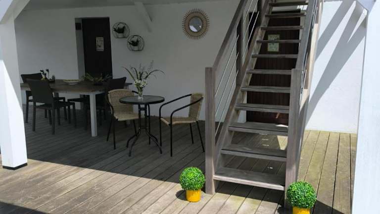 Le Clos de Kerhouil bietet eine Unterkunft mit Terrasse und Gartenblick. Es handelt sich um ein Bed & Breakfast, das von einem privaten Gastgeber geführt wird. Die Einrichtung ist klimatisiert und Gäste können kostenfreies WLAN sowie einen Privatparkplatz in Anspruch nehmen. Check-in ist zwischen 17:00 und 21:00 Uhr möglich, während der Check-out von 08:00 bis 11:00 Uhr erfolgt. Es wird darauf hingewiesen, dass keine Feierlichkeiten wie Junggesellenabschiede erlaubt sind und der Mindest- sowie Höchstalter für den Check-in 18 Jahre beträgt.