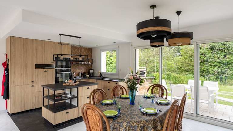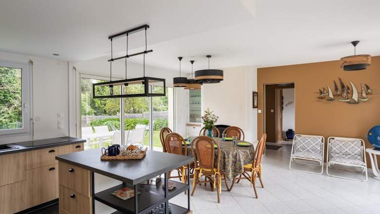 Das Ferienhaus im Le clos de la Roche Angevin - Charmante maison 6 voyageurs verfügt über 3 gemütliche Schlafzimmer, ein geräumiges Wohnzimmer und eine gut ausgestattete Küche. Die Unterkunft bietet zudem eine Terrasse mit Blick auf den Garten. Handtücher und Bettwäsche werden gestellt, um den Gästen einen angenehmen Aufenthalt zu ermöglichen.