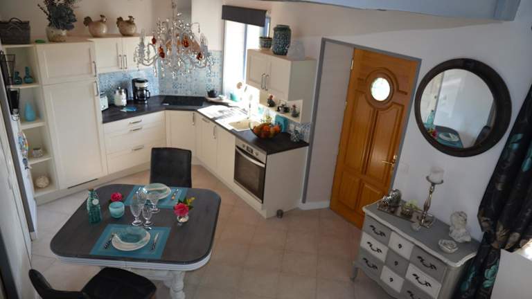 Das Ferienhaus im Le Clos des Agapanthes verfügt über eine Terrasse und bietet einen schönen Gartenblick. Es gibt 1 Schlafzimmer, ein komfortables Wohnzimmer und einen Flachbild-TV für Unterhaltung. Die voll ausgestattete Küche mit Kühlschrank und Backofen ermöglicht es den Gästen, ihre eigenen Mahlzeiten zuzubereiten. Das Badezimmer ist mit einer Dusche ausgestattet und Handtücher und Bettwäsche werden im Ferienhaus gestellt, um den Gästen den nötigen Komfort zu bieten.