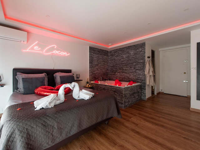LE COCON- Jacuzzi & Sauna privés By SweetDreams bietet eine Unterkunft mit einer Terrasse und einem Balkon. Die Ferienwohnung ist mit kostenlosem WLAN ausgestattet und umfasst ein Schlafzimmer, ein Flachbild-TV sowie eine Küche, die mit einem Kühlschrank eingerichtet ist. Handtücher und Bettwäsche werden bereitgestellt.