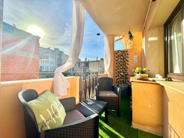 Die Ferienwohnung verfügt über 1 Schlafzimmer und ist ausgestattet mit einer Küche, die mit Kühlschrank und Ofen ausgestattet ist. Ein Flachbild-TV und ein Sitzbereich sind ebenfalls vorhanden. Das Badezimmer ist mit einem Bidet ausgestattet und es werden Handtücher sowie Bettwäsche bereitgestellt. Eine Terrasse ist ebenfalls verfügbar.