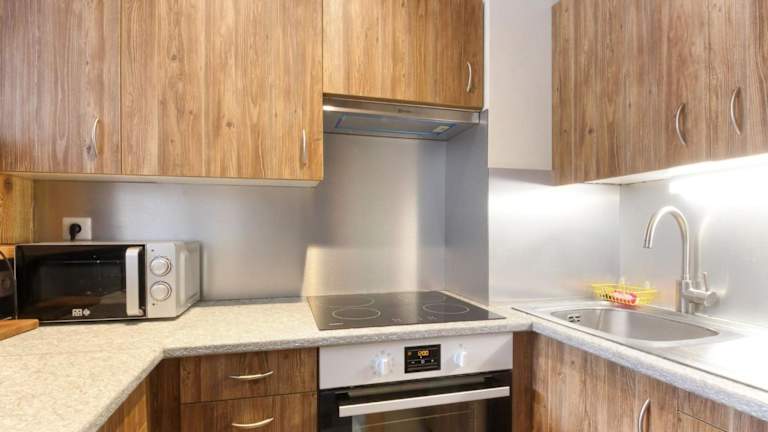 Die Ferienwohnung verfügt über 2 Schlafzimmer, ein Badezimmer sowie eine voll ausgestattete Küche. Zur Ausstattung gehören Bettwäsche, Handtücher, ein TV mit Satellitenkanälen und ein Balkon mit Blick auf die Berge.
