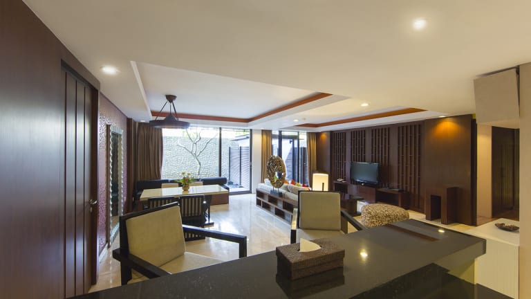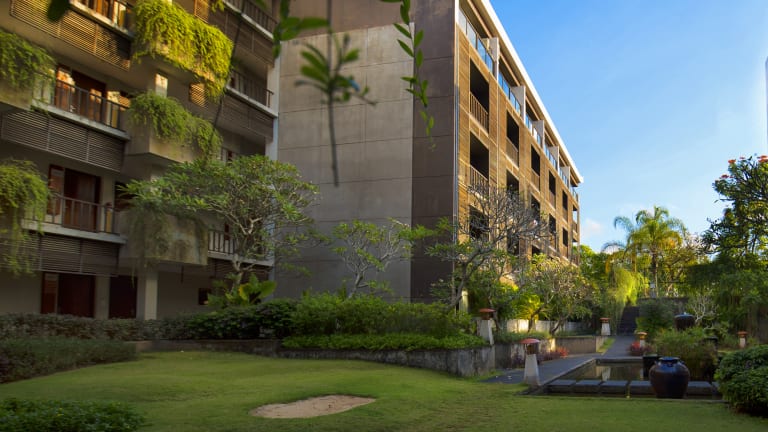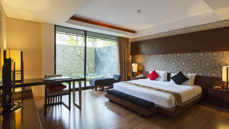 Das 5-Sterne Hotel Le Grande Suites Bali in Uluwatu ist für einen Badeurlaub geeignet gelegen. Das Hotel Le Grande Suites Bali heißt Sie mit 190 klimatisierten Hotelzimmern willkommen. Ein kostenloser Hot-Spot ist im Hotel verfügbar. Eine Bar, ein Restaurant, ein Seminarraum sowie ein Gepäckraum sind im Haus verfügbar. Die Anlage ist mit einem Geschenkeladen ausgestattet. Wäscheservice, Chemische Reinigung sowie Schuhputzservice komplettieren das Dienstleistungspaket. Freuen Sie sich auf kostenlose Parkplätze am Hotel.