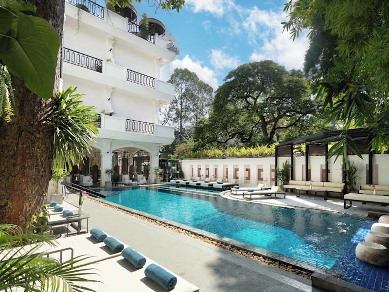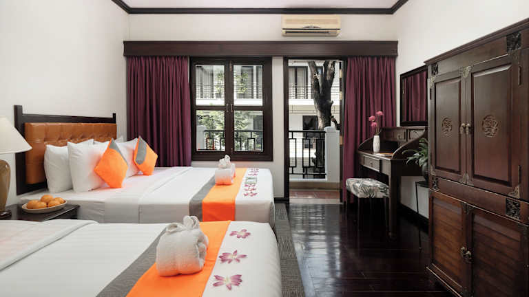Le Grande Indochine Hotel bietet Übernachtungsmöglichkeiten mit einem Außenpool, kostenlosem Privatparkplatz, Fitnesscenter und Garten. Die Unterkunft stellt Zimmerservice zur Verfügung und verfügt über ein Restaurant sowie eine Terrasse. Zimmerservice und ein Grill sind ebenfalls vorhanden.