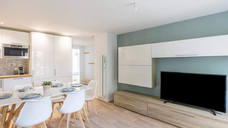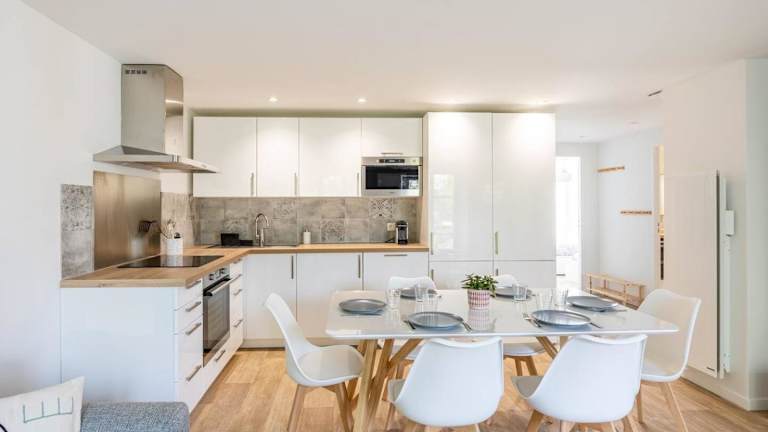 Die Ferienwohnung verfügt über zwei Schlafzimmer, ein Wohnzimmer mit Flachbild-TV, eine gut ausgestattete Küche mit Kühlschrank und Geschirrspüler sowie ein Badezimmer mit Dusche. Handtücher und Bettwäsche werden zur Verfügung gestellt. Die Unterkunft bietet außerdem eine Terrasse mit Gartenblick.