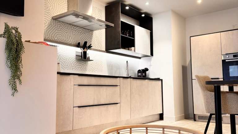 Die Ferienwohnung umfasst ein Schlafzimmer, ein Wohnzimmer und eine voll ausgestattete Küche, die mit einem Geschirrspüler und einem Ofen ausgestattet ist. Handtücher und Bettwäsche werden bereitgestellt. Die Unterkunft bietet Nichtraucherzimmer sowie Räume, die für Familien geeignet sind.