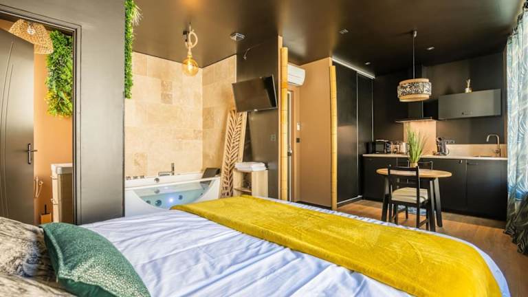 La Jungle Room ~ Balnéo ~ Vin Pétillant ~ Clim ist eine Ferienwohnung, die kostenloses WLAN sowie Klimaanlage bietet. Zudem steht ein Whirlpool zur Verfügung. Die Rezeption ist kontinuierlich besetzt und die Mitarbeitenden sprechen Englisch und Französisch.