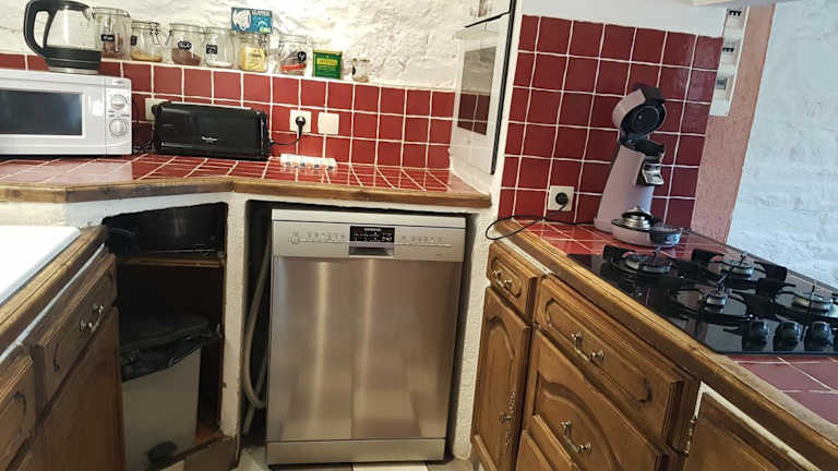 Die Unterkunft ist mit einer voll ausgestatteten Küche ausgestattet, die unter anderem einen Kühlschrank, Geschirrspüler, Ofen, Mikrowelle, Herdplatte, Toaster, Kaffeemaschine und Wasserkocher umfasst. Grillmöglichkeiten sind ebenfalls vorhanden.