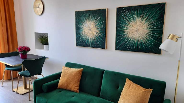Die Ferienwohnung besteht aus einem Schlafzimmer, einem Wohnzimmer und einer voll ausgestatteten Küche, die mit einem Kühlschrank und einer Kaffeemaschine ausgestattet ist. Das Badezimmer enthält ein Bidet und eine Dusche. In der Unterkunft sind kostenlose Handtücher und Bettwäsche verfügbar. WLAN ist in der Unterkunft kostenfrei, und es wird Wert auf Nichtraucherbereiche gelegt.