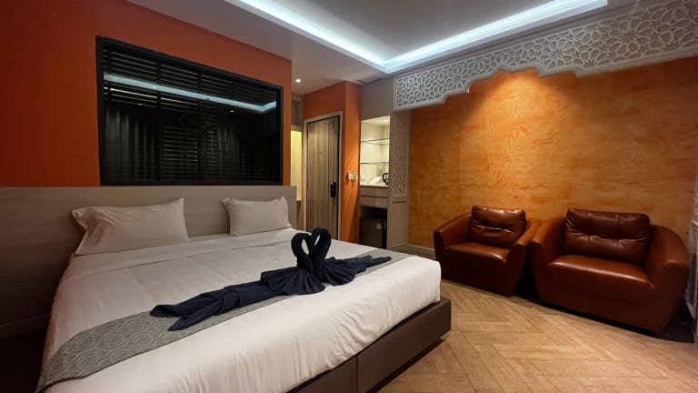 Le Maroc Hotel Patong bietet Übernachtungsmöglichkeiten in einem modernen Ambiente, das sich wenige Schritte vom Strand entfernt befindet. Das Hotel verfügt über eine Terrasse, ein Restaurant und eine Bar, und ist mit einem Aufzug, einer Rezeption sowie einem privaten Parkplatz ausgestattet.
