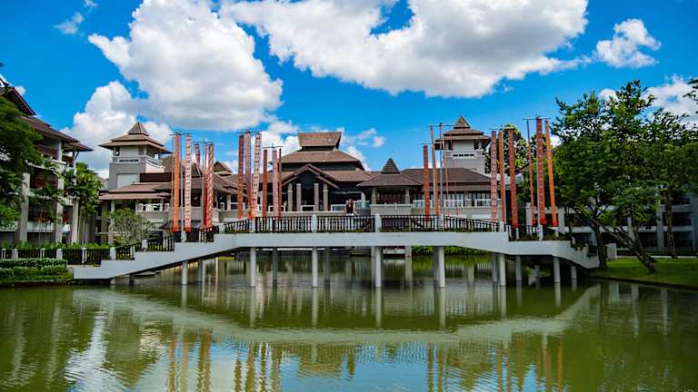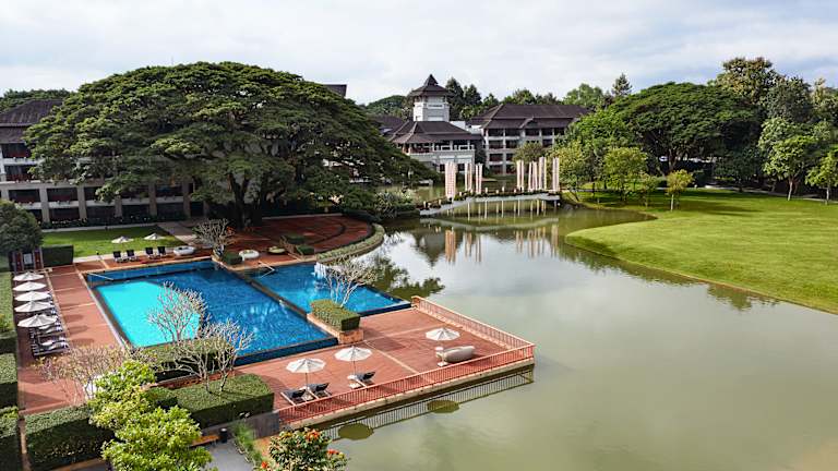 Das Le Meridien Chiang Rai Resort liegt in einer natürlichen Landschaft im nördlichsten Teil von Thailand, in der Provinz Chiang Rai. Das Hotel ist von Bergen, historischen Tempeln und den Dörfern der Bergstämme umgeben. Es befindet sich neben dem Fluss Kok und bietet einen malerischen Blick auf die Umgebung. Die Lage ist ideal für Naturliebhaber und ermöglicht es Ihnen, die Schönheit der Region zu erkunden. Das Stadtzentrum von Chiang Rai ist nur wenige Kilometer entfernt und bietet Ihnen vielfältige Einkaufs- und Unterhaltungsmöglichkeiten.