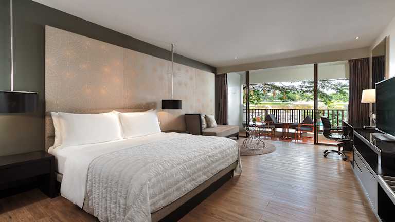 Das Le Meridien Chiang Rai Resort verfügt über 160 stilvoll eingerichtete Zimmer, die sich sowohl im Haupthaus als auch in den Nebengebäuden befinden. Jedes Zimmer ist mit modernen Annehmlichkeiten ausgestattet und bietet einen großen Balkon mit Blick auf die tropische Vegetation oder den Fluss. Zur Ausstattung gehören ein Flachbild-TV, ein Safe und ein eigenes Badezimmer mit separater Badewanne und Warmwasserdusche.