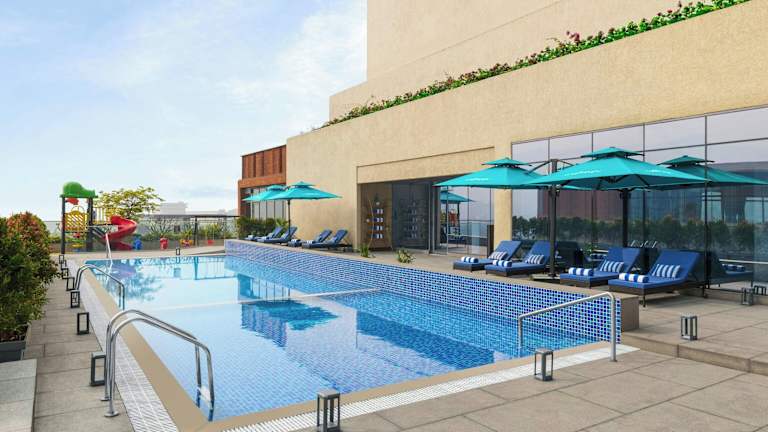 Die Unterkunft Le Méridien Navi Mumbai bietet eine moderne und komfortable Atmosphäre für Gäste. Es handelt sich um ein Hotel mit umfassenden Annehmlichkeiten, darunter ein Außenpool, kostenloses WLAN sowie ein Concierge-Service. Die Rezeption ist rund um die Uhr besetzt, und es stehen zahlreiche Dienstleistungen wie Zimmerservice und Währungsumtausch zur Verfügung.