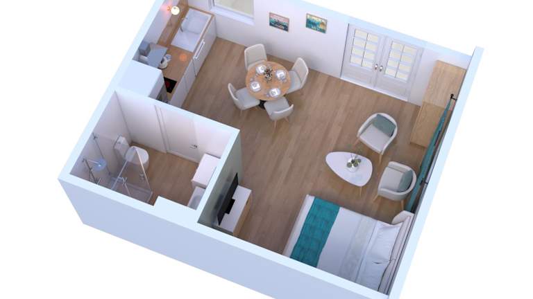 Die Ferienwohnung umfasst ein Schlafzimmer sowie eine Küche, die mit einem Kühlschrank und einem Ofen ausgestattet ist. Des Weiteren gibt es ein Badezimmer mit einer Dusche, einem Haartrockner und einer Waschmaschine. Handtücher und Bettwäsche werden bereitgestellt. Alle Privaträume sind Nichtraucherzonen.