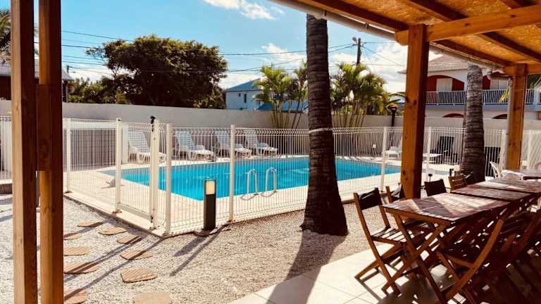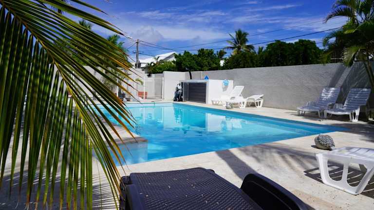 LE NID TROPICAL, Piscine chauffée bietet klimatisierte Wohneinheiten, die über eine voll ausgestattete Küche mit Kühlschrank, Kaffeemaschine und Geschirrspüler verfügen. Jede Wohneinheit hat einen Balkon, von dem aus man den Blick auf den Pool genießen kann. Die Unterkunft hat einen Außenpool sowie eine Sonnenterrasse und bietet kostenloses WLAN in allen Bereichen. Ein Privatparkplatz ist ebenfalls vorhanden.