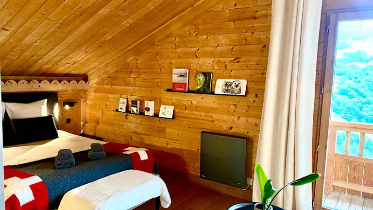 Die Unterkunft befindet sich in Manigod, umgeben von einer reizvollen Berglandschaft. Sie bietet einen Blick auf die umliegenden Berge und liegt in der Nähe des Olympiastadions Albertville, das ca. 42 km entfernt ist.