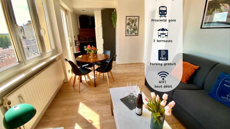 Die Apartments im Le Perchoir - WIFI - Gare - Proche tous commerces bieten einen gemütlichen Aufenthalt mit 1 Schlafzimmer, einer voll ausgestatteten Küche, einem Flachbild-TV und einem komfortablen Sitzbereich. Das Bad ist mit einer Dusche ausgestattet und Handtücher sowie Bettwäsche werden gestellt. Genießen Sie den Stadtblick von der Terrasse oder dem Balkon und nutzen Sie das kostenfreie WLAN in allen Bereichen.