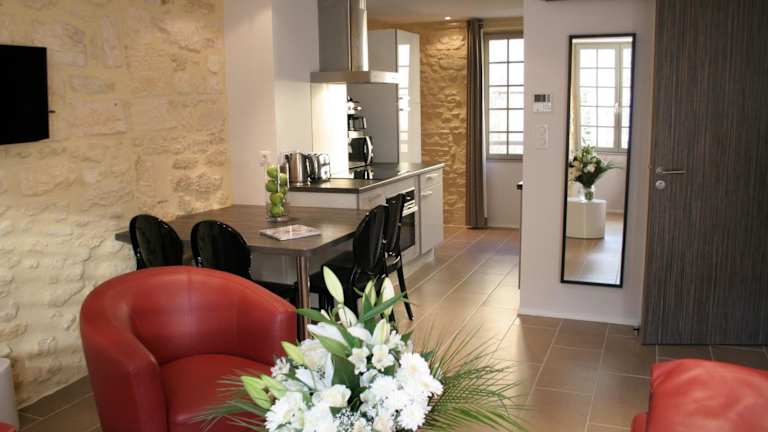 Die Apartments und Studios im Le Porche Sarlat bieten einen komfortablen Wohnbereich mit Flachbild-TV, ein eigenes Bad und kostenfreies WLAN. Einige Apartments verfügen über einen Garten mit Blick auf die Kathedrale. Die voll ausgestattete Küche mit Backofen, Spülmaschine und Kaffeemaschine ermöglicht es Ihnen, Ihre eigenen Mahlzeiten zuzubereiten. Darüber hinaus steht Ihnen während Ihres Aufenthalts eine Waschmaschine zur Verfügung.