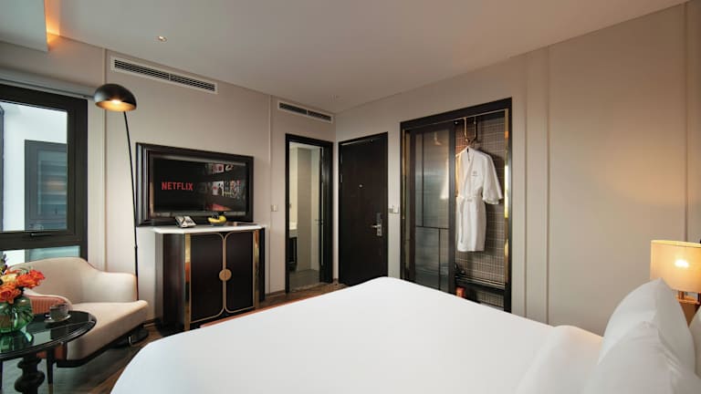 Die Zimmer des Le Premier Hotel & Rooftop Bar sind mit Klimaanlage, einem Sitzbereich, einem Flachbild-TV mit Satellitenkanälen, einem Safe und einem eigenen Badezimmer mit Bidet, kostenlosen Pflegeprodukten sowie einem Haartrockner ausgestattet. Einige Zimmer bieten zudem einen Balkon und Stadtblick. Alle Wohneinheiten verfügen über Bettwäsche und Handtücher sowie einen Wasserkocher.