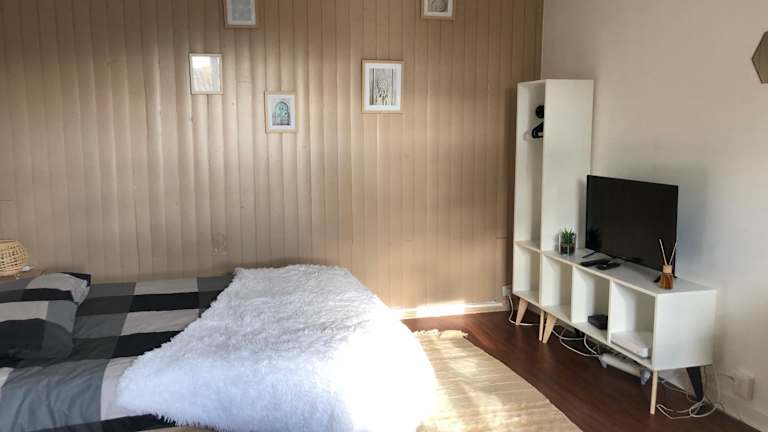 Die Ferienwohnung verfügt über 1 Schlafzimmer und eine voll ausgestattete Küchenzeile mit Kühlschrank und Ofen. Zudem gibt es ein Badezimmer mit Dusche und Haartrockner. Handtücher und Bettwäsche werden bereitgestellt.