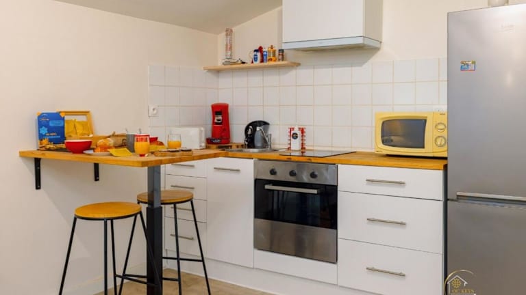 Das Appartement verfügt über ein Schlafzimmer, einen Flachbild-TV, eine gut ausgestattete Küche mit Kühlschrank und Ofen sowie ein Badezimmer mit Dusche. Bettwäsche und Handtücher werden bereitgestellt. Das Zimmer ist schallisoliert und Nichtraucherzimmer. Es stehen WLAN und Heizung zur Verfügung.