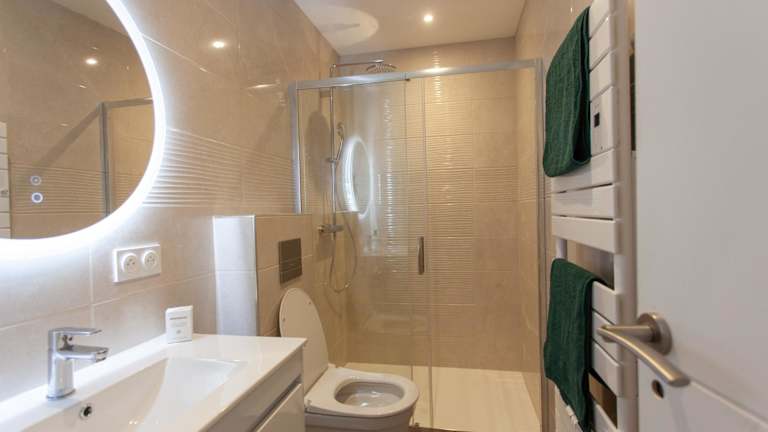 Die Ferienwohnung umfasst ein Schlafzimmer, eine Küche, die mit einem Kühlschrank und einem Ofen ausgestattet ist, einen Flachbild-TV sowie einen Sitzbereich. Des Weiteren stehen ein Badezimmer mit Dusche zur Verfügung. Handtücher und Bettwäsche sind in der Unterkunft vorhanden.