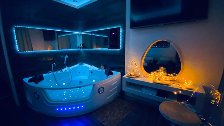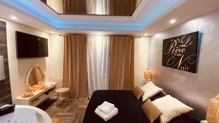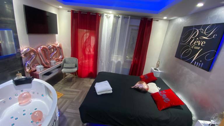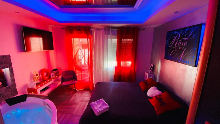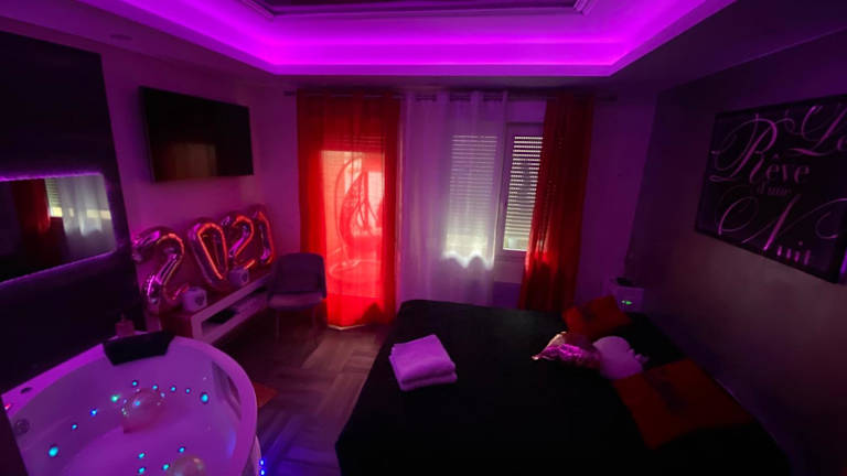 Erleben Sie einen romantischen Aufenthalt im Le Rêve d'une Nuit suite Amour in Sarreguemines. Das Hotel bietet komfortable Unterkünfte mit kostenfreiem WLAN und einer Terrasse. Entspannen Sie in der Sauna und dem Whirlpool und genießen Sie die Nähe zu Sehenswürdigkeiten wie dem Parlament des Saarlandes und dem Saarländischen Staatstheater.