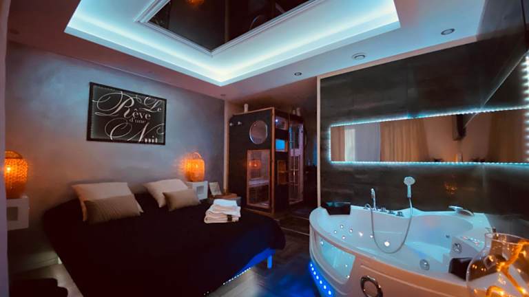 Entspannen Sie sich im Le Rêve d'une Nuit suite Amour in der Sauna und im Whirlpool. Hier können Sie sich nach einem ereignisreichen Tag voller Erkundungen und Besichtigungen wunderbar entspannen.