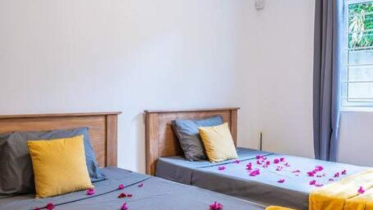 Das Apartment im Le Rivage Appartement Mauritius bietet Platz für bis zu vier Personen und verfügt über zwei gemütliche Schlafzimmer. Die Küche ist gut ausgestattet mit einem Kühlschrank und einem Backofen, so dass Sie Ihre eigenen Mahlzeiten zubereiten können. Im Wohnbereich finden Sie einen Flachbild-TV und einen bequemen Sitzbereich. Das moderne Badezimmer ist mit einer Dusche ausgestattet. Handtücher und Bettwäsche werden gestellt, so dass Sie sich um nichts kümmern müssen.