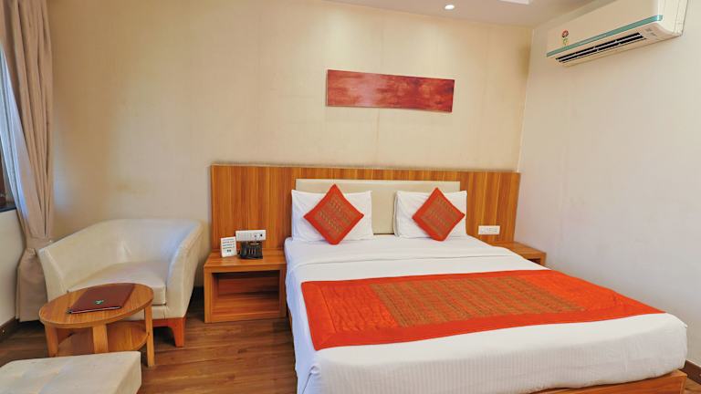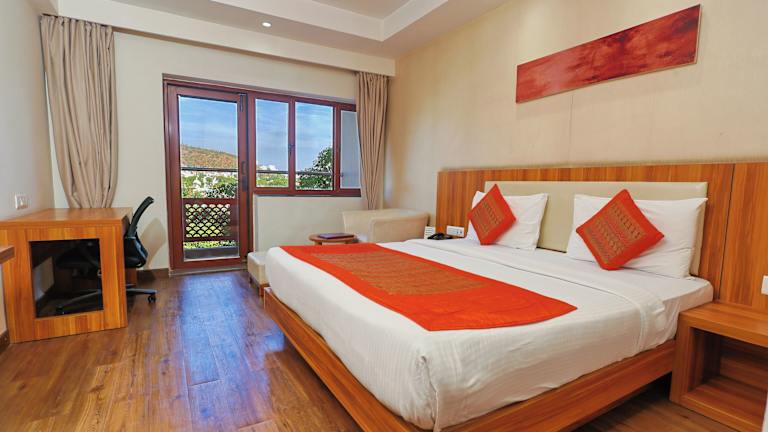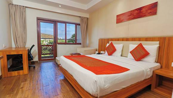 Das Le Roi Udaipur ist ein komfortables Hotel, das sich direkt gegenüber dem Bahnhof Udaipur befindet. Mit einer 24-Stunden-Rezeption und kostenfreiem WLAN bietet das Hotel seinen Gästen einen angenehmen Aufenthalt. Die Zimmer sind gut ausgestattet und verfügen über Annehmlichkeiten wie einen TV, Klimaanlage und einen Balkon. Das hauseigene Restaurant bietet eine Vielfalt an regionalen, indischen, chinesischen und kontinentalen Gerichten. Zusätzlich stehen den Gästen eine Terrasse, ein Minimarkt und Konferenzeinrichtungen zur Verfügung. Die Parkplätze sind kostenlos. In der Nähe des Hotels befinden sich beliebte Sehenswürdigkeiten wie der Gulaab Baug, der Stadtpalast von Udaipur und der Jagdish-Tempel. Der Busbahnhof Udaipur und der Flughafen Maharana Pratap sind ebenfalls leicht erreichbar.