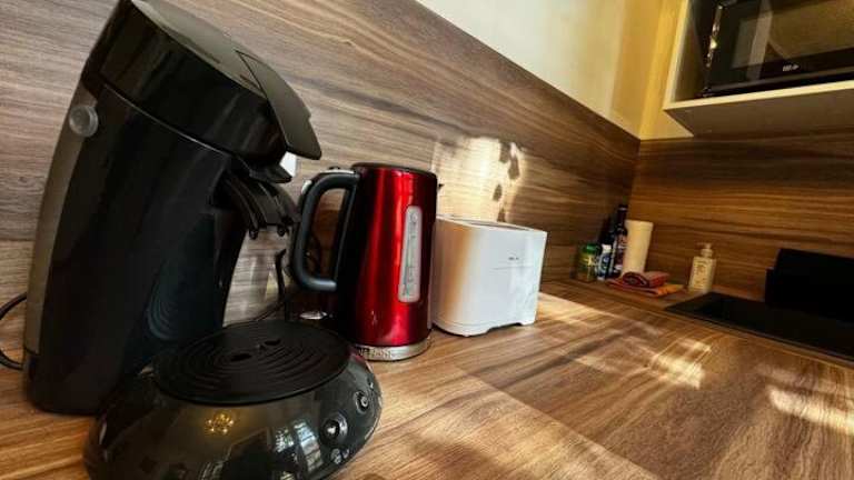 Die Ferienwohnung verfügt über ein Schlafzimmer sowie eine Küchenzeile, die mit einem Kühlschrank, einer Mikrowelle und einer Kaffeemaschine ausgestattet ist. Handtücher und Bettwäsche werden in der Unterkunft bereitgestellt.