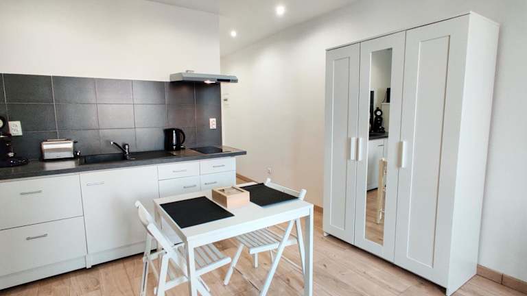 Die Ferienwohnung ist mit kostenlosem WLAN ausgestattet und verfügt über einen TV sowie eine Waschmaschine. Die Küche bietet einen Kühlschrank und eine Mikrowelle für die Zubereitung eigener Mahlzeiten. Die Unterkunft stellt Bettwäsche und Handtücher zur Verfügung, die gemäß den Richtlinien der örtlichen Behörden gewaschen werden.