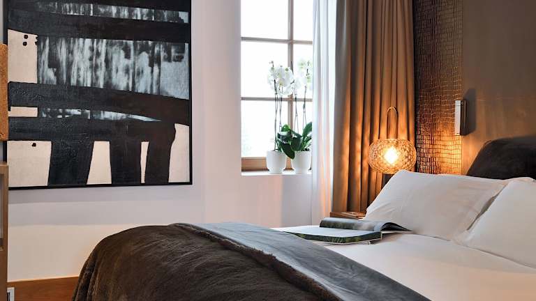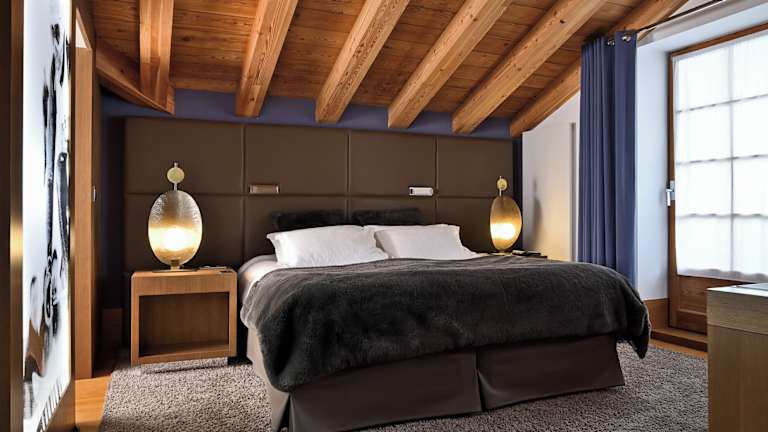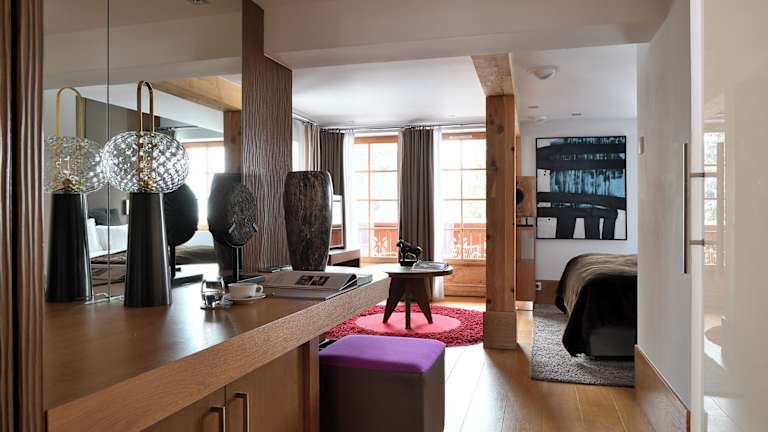 Die stilvollen Zimmer und Suiten im Hotel Le Strato sind modern eingerichtet und mit Parkett ausgelegt. Einige Zimmer verfügen über ein separates Wohnzimmer oder bieten Aussicht auf die Pisten.