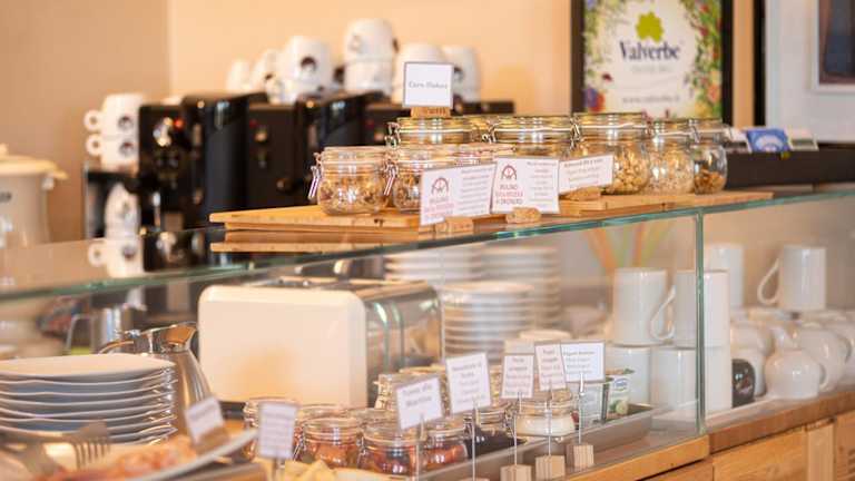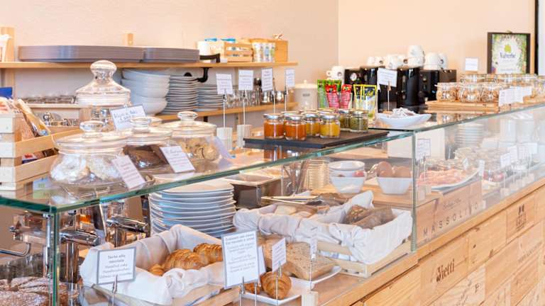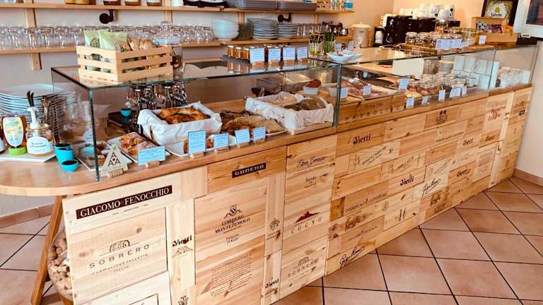 Das Frühstück im Le Torri - Castiglione Falletto ist eine wahre Freude für die Sinne. Es wird jeden Morgen mit Bio-Zutaten aus der Region serviert und Sie können es im Freien genießen.