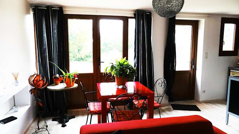 Das Apartment im Le vieux Pressoir verfügt über eine Terrasse mit Blick auf den Garten. Es bietet ein komfortables Schlafzimmer, ein gemütliches Wohnzimmer und ein modernes Badezimmer. Die Küche ist gut ausgestattet mit einem Kühlschrank und einem Backofen. Handtücher und Bettwäsche werden gestellt, um Ihren Aufenthalt so angenehm wie möglich zu gestalten.