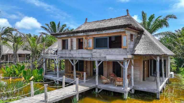 LE VILLAGE D'HÉLÈNE - Natura Resort bietet seinen Gästen Übernachtungsmöglichkeiten mit einem Außenpool, einem Garten sowie einer Gemeinschaftslounge und Terrasse. Die Bar dient als Ort der Entspannung.